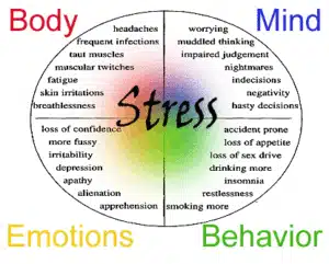 According to a WebMD article, there are emotional, physical, cognitive and behavioral symptoms that occur because of stress.